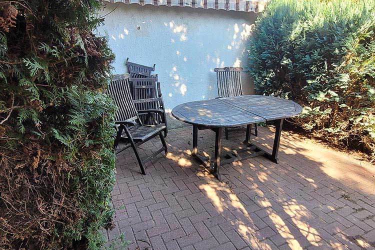 Insgesamt befinden sich im EG 4 Zimmer mit Küche und Bad. Das Gebäude ist teilunterkellert. Das DG ist nicht ausgebaut. Hiter dem Haus befindet sich ein Hof mit einem Nebengebäude und einer Sitzecke. Dahinterbefindet sich ein Garten.